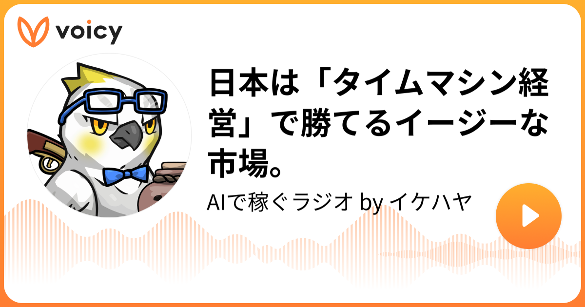 日本は「タイムマシン経営」で勝てるイージーな市場。 | イケハヤ「AIで稼ぐラジオ by イケハヤ」/ Voicy - 音声プラットフォーム